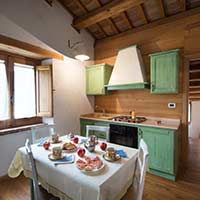 L ’agriturismo la Cambra è costituito da quattro mini appartamenti e tre camere, ai cui alloggi sono stati dati i nomi delle migliori cagnoline da tartufo che si sono distinte negli anni della raccolta: Derna, Stella, Deppi, Baffa, Lilla, Topetta, Vespa. Ogni mini appartamento dispone di una cucina indipendente, camera con letto matrimoniale e bagno privato. Le tre camere dispongono di un bagno privato interno, letto matrimoniale ed accesso indipendente. Invece la prima colazione, che è inclusa nel prezzo, è disponibile nella cucina comune e comunque servita all’aperto. La struttura dispone anche di una camera per disabili con bagno privato.